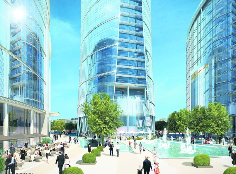Dwuhektarową działkę na terenach dawnych zakładów graficznych Ghelamco kupiło już w 2006 roku za 85 mln zł. Od tamtej pory trwały prace koncepcyjne nad zagospodarowaniem parceli. Obecny projekt zakłada, że w skład kompleksu wejdą: 220-metrowa wieża oraz dwa budynki boczne o wysokości 55 m. Budynek wysokościowy będzie jednym z najwyższych biurowców w Europie.