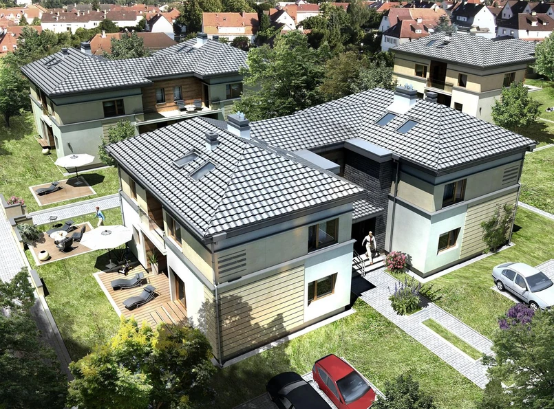 Zakup mieszkania w takim projekcie nie wiąże się też z koniecznością zakupu garażu czy miejsca postojowego na samochód. Każde z mieszkań ma wydzielone miejsce parkingowe przed budynkiem lub na wjeździe swojej działki. Cena za metr kwadratowy mieszkania, w którą wliczona jest część działki, wynosi około 5500 zł.