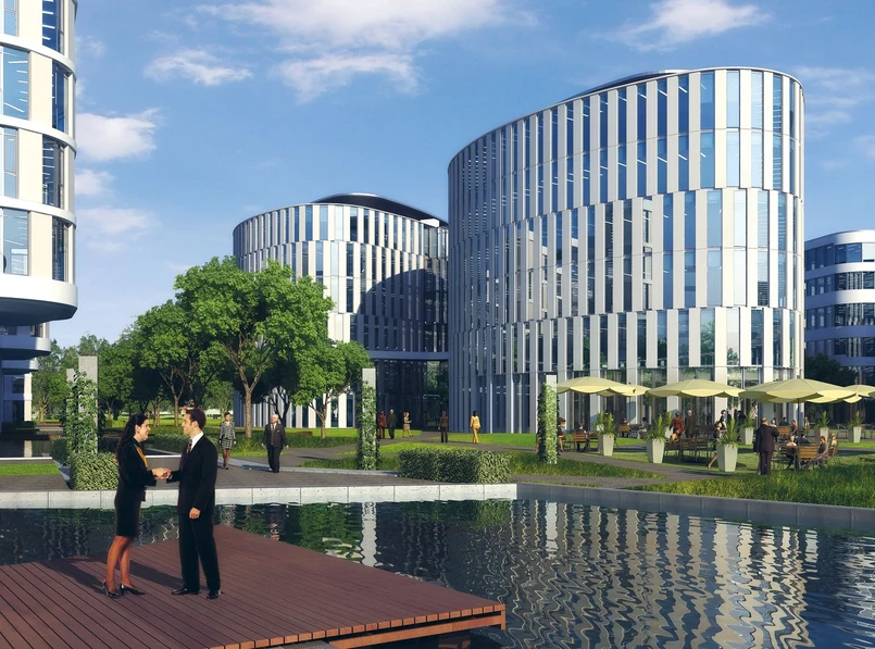 Nietuzinkowe ma być też najbliższe otoczenie nowego kompleksu biurowego. Tereny zielone parku biznesowego przy Żwirki i Wigury mają stanowić 60 proc. powierzchni działki. Dużą ich część zajmie ogród. Zlokalizowany on będzie w środkowej części parceli, między dwiema zwartymi liniami zabudowy. W centralnej części parku biurowego staną też cztery budynki o wyróżniających się, obłych kształtach. Pierzeje: wschodnia i zachodnia, zabudowane zostaną zwarcie budynkami, między którymi zaplanowano niewielkie prześwity.