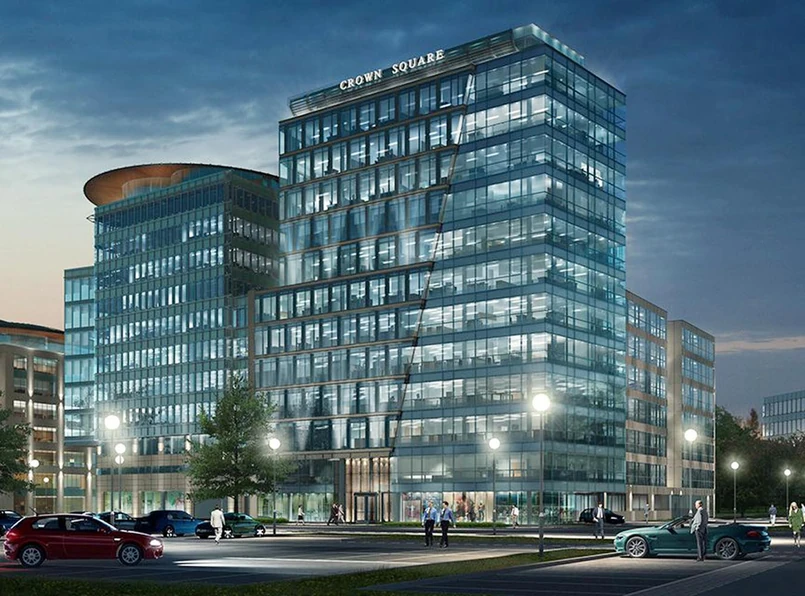 Na terenie inwestycji budowlańcy pracują obecnie nad konstrukcją ścian szczelinowych. Crown Square liczyć ma 17 tys. mkw. powierzchni ulokowanej na 13. kondygnacjach naziemnych. Pod budynkiem przewidziano też trzy poziomy podziemne, na których znajdzie się 227 miejsc parkingowych.