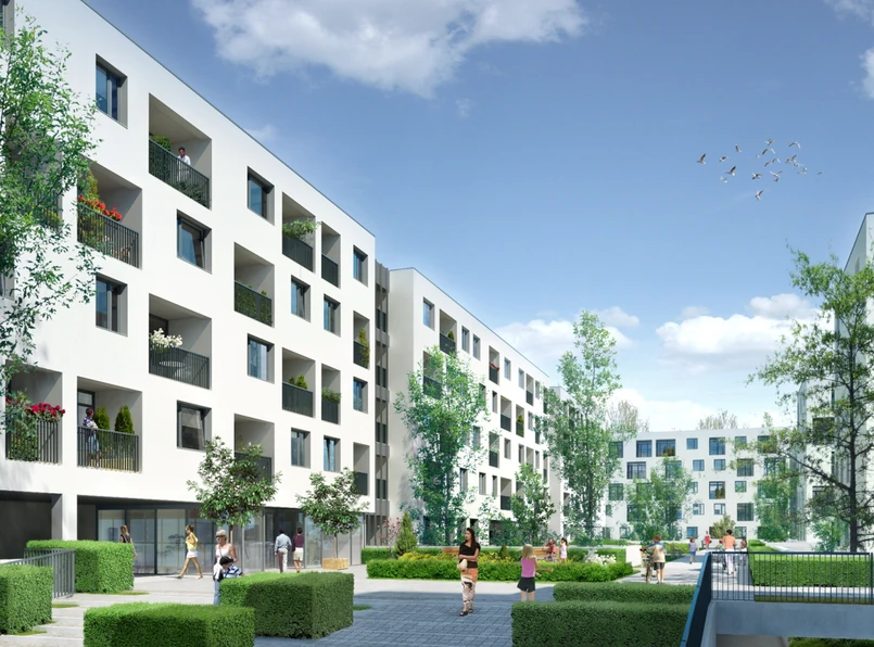 W tej chwili realizowany jest pierwszy etap inwestycji, którego budowa rozpoczęła się na początku ubiegłego roku. Generalny wykonawca zdążył w tym czasie doprowadzić do stanu surowego trzy budynki oraz wybudować podziemne kondygnacje pod całym kompleksem. W sumie we wszystkich trzech etapach stanie siedem czteropiętrowych budynków, w których rozplanowano przeszło 355 lokali oraz powierzchnie handlowo- usługowe, których metraż oscylował będzie w okolicach 820 mkw.