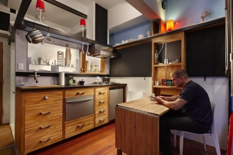3 - ”Drażni mnie marnowanie przestrzeni. Jakość jest dla mnie ważniejsza niż ilość, a dodatkowa przestrzeń to tylko dodatkowy problem" - przekonuje Steve Sauer. I przyznaje, że na opracowanie projektu i urządzenie mieszkania, w którym wykorzystano każdy centymetr potrzebował blisko siedmiu lat