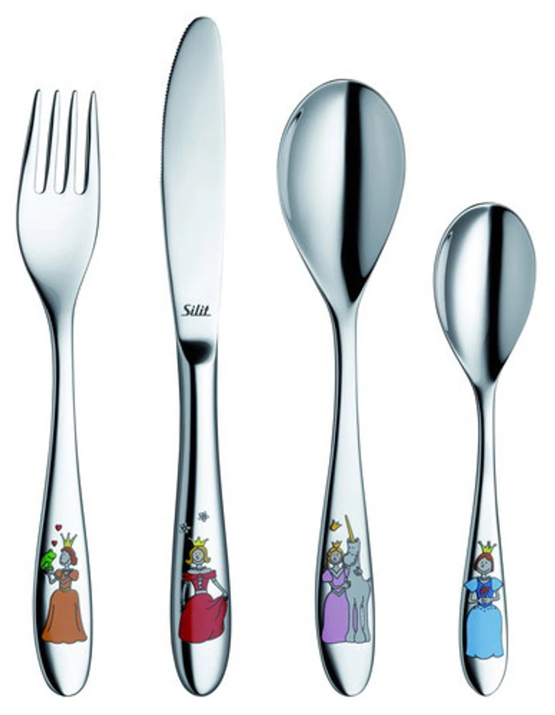 Sztućce Prinzessin wykonano ze stali nierdzewnej. Ich trzonki są ozdobione postaciami z kreskówek, dzięki czemu nikt nie ma wątpliwości, kto jest właścicielem łyżeczki czy widelczyka. Można także dzięki nim uczyć malucha samodzielności i nakłaniać, by sam zmywał swoją zastawę. Oczywiście producent ma coś i dla chłopców, i dla dziewczynek - jeden komplet zdobią piękne księżniczki, drugi dzielni rycerze.