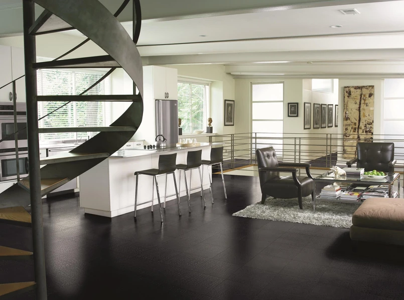 Niewielu osobom przyszłoby do głowy, że tego typu materiał można wykorzystać na posadzkach, ale dzięki odpowiedniej obróbce jest równie trwały jak jego drewniane odpowiedniki. Produkt kanadyjskiej marki Torlys dostępny jest w 12 wzorach i wytwarza się go w dwóch formatach – deski oraz kwadratowej płytki.
