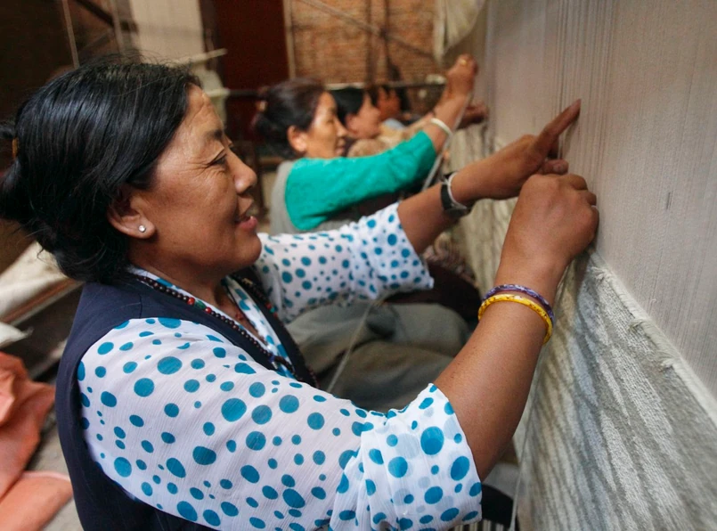 Kolejnym wyjątkowym przykładem sztuki rękodzielniczej są dywany tybetańskie (dostępne m.in. w salonie Tara). Wykonywane są z owczej wełny i różnych roślinnych włókien. Proces produkcji dywanu jest niezwykle pracochłonny i zajmuje około trzech miesięcy (dla wymiarów 170 x 240 cm).