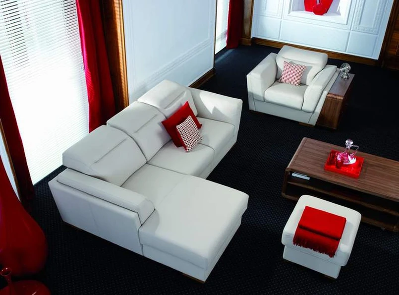 Podniesione oparcia podpierają wysokie partie pleców oraz głowę, opuszczone zaś nadają meblowi przestronnego charakteru, optycznie powiększając wnętrze. Dla osób ceniących sobie półleżącą pozycję wraz z sofami dwu- i trzyosobowymi producent oferuje przedłużone siedziska typu szezlong.