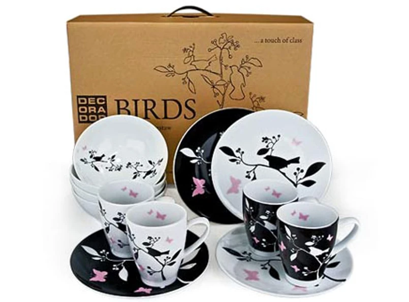 To 12-częściowy zestaw śniadaniowy BIRDS, w którego skład wchodzą: 4 talerze deserowe, 4 miseczki śniadaniowe, 4 kubki. Autorski projekt projektantki Decorador, Ewy Szyszki-Oczkowskiej zachwyca swoją delikatnością i uniwersalnością. Nie ma bowiem znaczenia, czy kuchnia nowożeńców będzi urządzona nowocześnie, czy bardziej tradycyjnie. Zestaw doskonale komponuje się w każdym w tych wypadków.