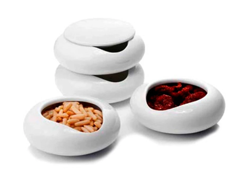 Eleganckie i funkcjonalne miseczki na przekąski Nuance ucieszą każdego, bez względu na to, jak ma urządzone mieszkanie. Ciekawa jest ich konstrukcja, pozwala bowiem na nałożenie jednej miseczki na drugą. Do jednej można nałożyć oliwek, do drugiej papryki, do trzeciej czegoś jeszcze i eleganckie przyjęcie gotowe. Grunt to dobry design!