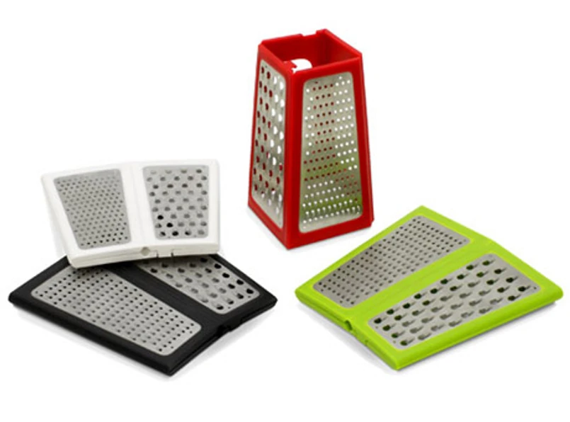 Na szczęście ktoś wpadł na to, że nasze szuflady to nie przepastne komory bez dna i nie ma w nich nieskończenie wiele miejsca na urządzenia wygodne, ale jednak zajmujące dużo przestrzeni. To olśnienie zaowocowało interesującą składaną tarką. Sprzęt ma wszelkie zalety pełnowymiarowego akcesorium, a jednocześnie mieści się nawet do zapchanej szafki.