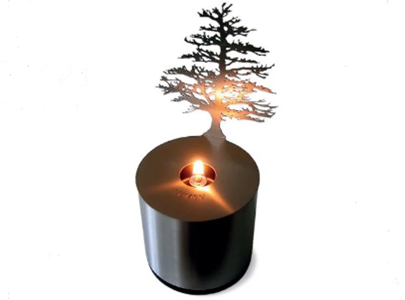Fenomen tej oryginalnej lampki oliwnej polega na grze światła i cienia: podpalony knot oświetla wykonany z blaszki kształt, a na ścianie pojawia się migoczące, duże drzewo.