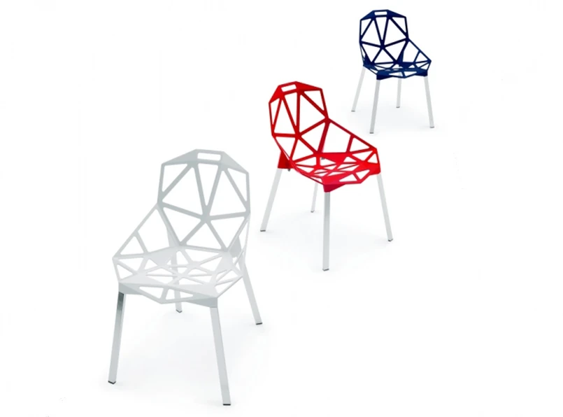 Siedzisko zostało zrobione z malowanego aluminium, nogi także są aluminiowe. Krzesełko znakomicie się sprawdzi nie tylko w pomieszczeniu zamkniętym, ale także w ogrodku. Jeśli chcesz uspokoić ciocię, to dokup do krzesła poduszkę - będzie miała wrażenie, że siada na czymś, a nie w pustej przestrzeni...