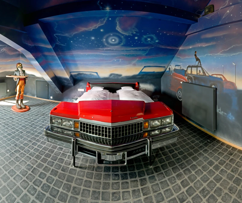 6 To z kolei propozycja dla miłośników podróży i spania pod gołym niebem. Na nich czeka pokój campingowy z zestawem nieodzownym składanych mebli. Do wyboru są także m.in.: pokój miłośnika Formuły 1. i Route 66