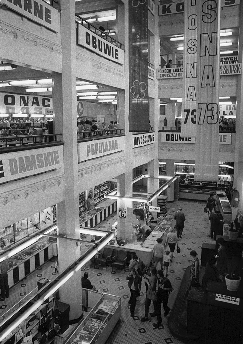 4 Przy wejściu do sklepu przy ul. Brackiej stanie umundurowany portier - ma witać klientów (zdejmuje czapkę i składa głęboki ukłon). "Chodzi o to, by klienci od pierwszej chwili poczuli się swojsko i przyjaźnie w tym wielkim sklepie". Każdy dostaje też drukowany przewodnik, żeby nie zgubić się w sklepie. "Towarów szuka się jak w bibliotece - w alfabetycznym indeksie, a oznaczenia przy artykułach wskazują piętra".