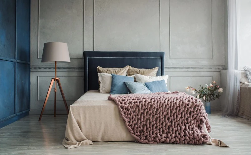1 Jeśli marzysz o sypialni, w której odpoczniesz po całym dniu pracy – kto, by tam nie chciał – warto w całym pomieszczeniu zachować stonowaną kolorystykę. Dobrze, jeśli bazą staną się jasne barwy, w tym tak modne w tym sezonie szarości, beże i np. pudrowy róż. Ich uzupełnieniem mogą się stać albo oryginalne obrazy i lampy albo oryginalne faktury, w tym np. grube sploty. To hit ostatnich tygodni!