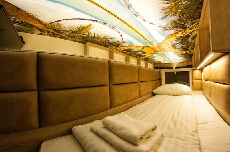 2 Najmniejszy apartament świata – jak jest urządzony? Do dyspozycji gości są: kabina prysznicowa z toaletą, aneks kuchenny i łóżko na antresoli. Brakuje otwieranego okna – zamiast niego są mleczne przeszklenia w suficie. - Byliśmy pełni obaw, jak przyjmie się nasz 2,5-metrowy lokal, tym bardziej że już od początku pomysł wydawał się z kosmosu. Architekt, dostając zlecenie, aż zaniemówił ze zdziwienia. Ale popularność apartamentu przerosła nasze oczekiwania. Klienci dokonują rezerwacji z dużym, niekiedy kilkumiesięcznym wyprzedzeniem - mówi opiekun lokalu, Filip Różański w rozmowie z LifeinKrakow.pl.