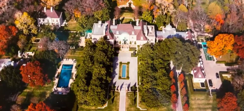 Na terenie posiadłości znajduje się nie tylko m.in. pięciopiętrowa willa, a także dwa domy gościnne i kompleks z basenem.