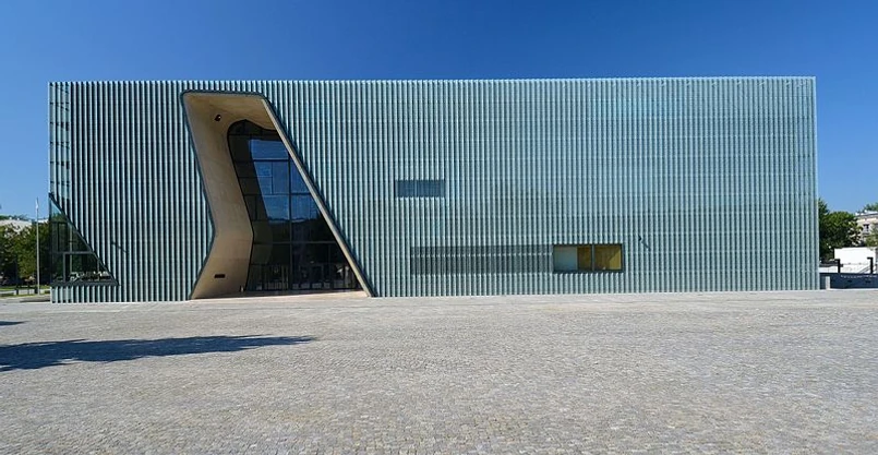 Najlepszy budynek w Polsce 2013 r. to dość proste pudełko o "eterycznej" elewacji ze szklanych paneli i siatki miedzianej, które rozrywa główne wejście umieszczone na wprost pomnika Bohaterów Getta. Architekt chciał, by ten hol kojarzył się z krajobrazami Ziemi Świętej, ale zarazem z wyrwą - symboliczną raną, która na zawsze pozostanie w pamięci zwiedzających. Mahlamäki nie lubi "literackości w architekturze", ale używa czasem cytatu z Biblii o rozstąpieniu się Morza Czerwonego w czasie ucieczki Żydów z niewoli egipskiej.