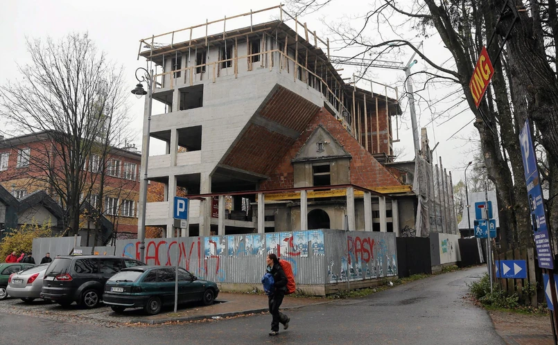 inwestor miał zgodę konserwatora na przebudowę i rozbudowę obiektu. Musiał tylko zachować dwie elewacje zewnętrzne i ściany wewnętrzne budynku. Zaczęło się. Projekt przygotował Piotr Leja, z Pracowni Architektonicznej ARQ. Resztki willi zostały przykryte betonową, wielopiętrową 'czapą', która wprost wchłonęła stary obiekt. Obiekt wygląda kuriozalnie, źródło: Bryla.pl